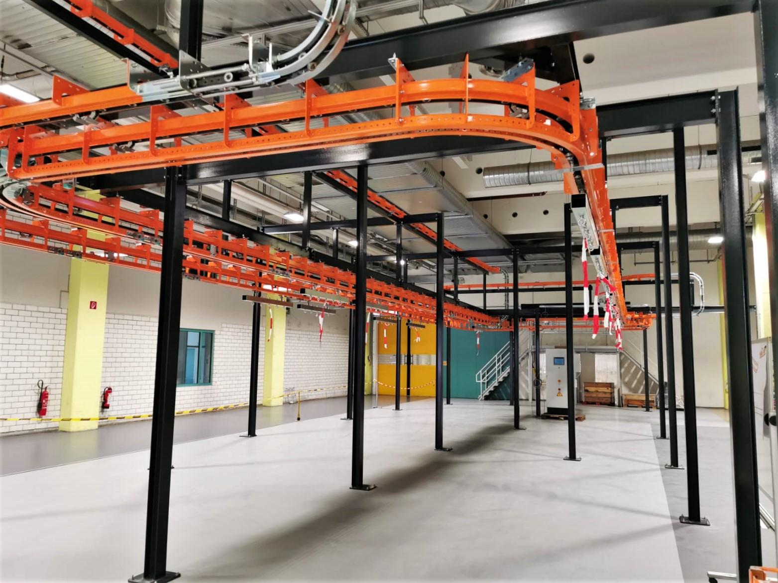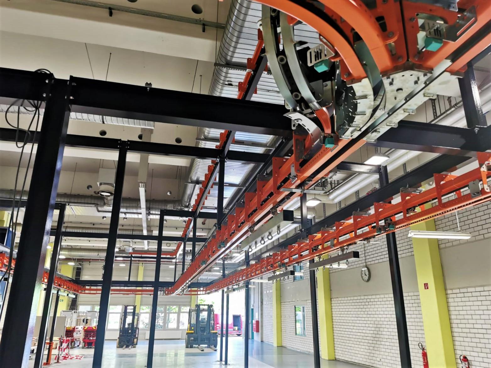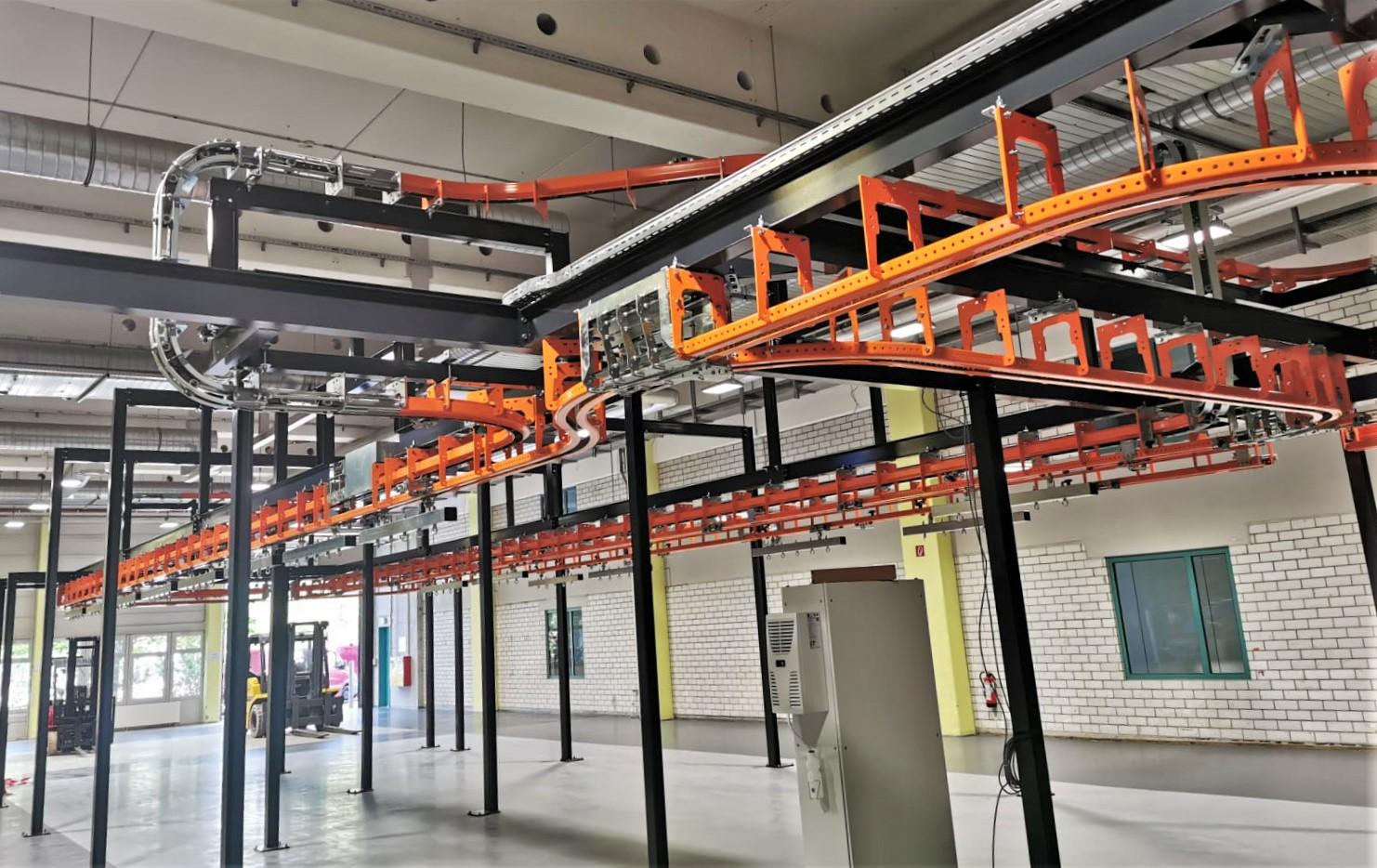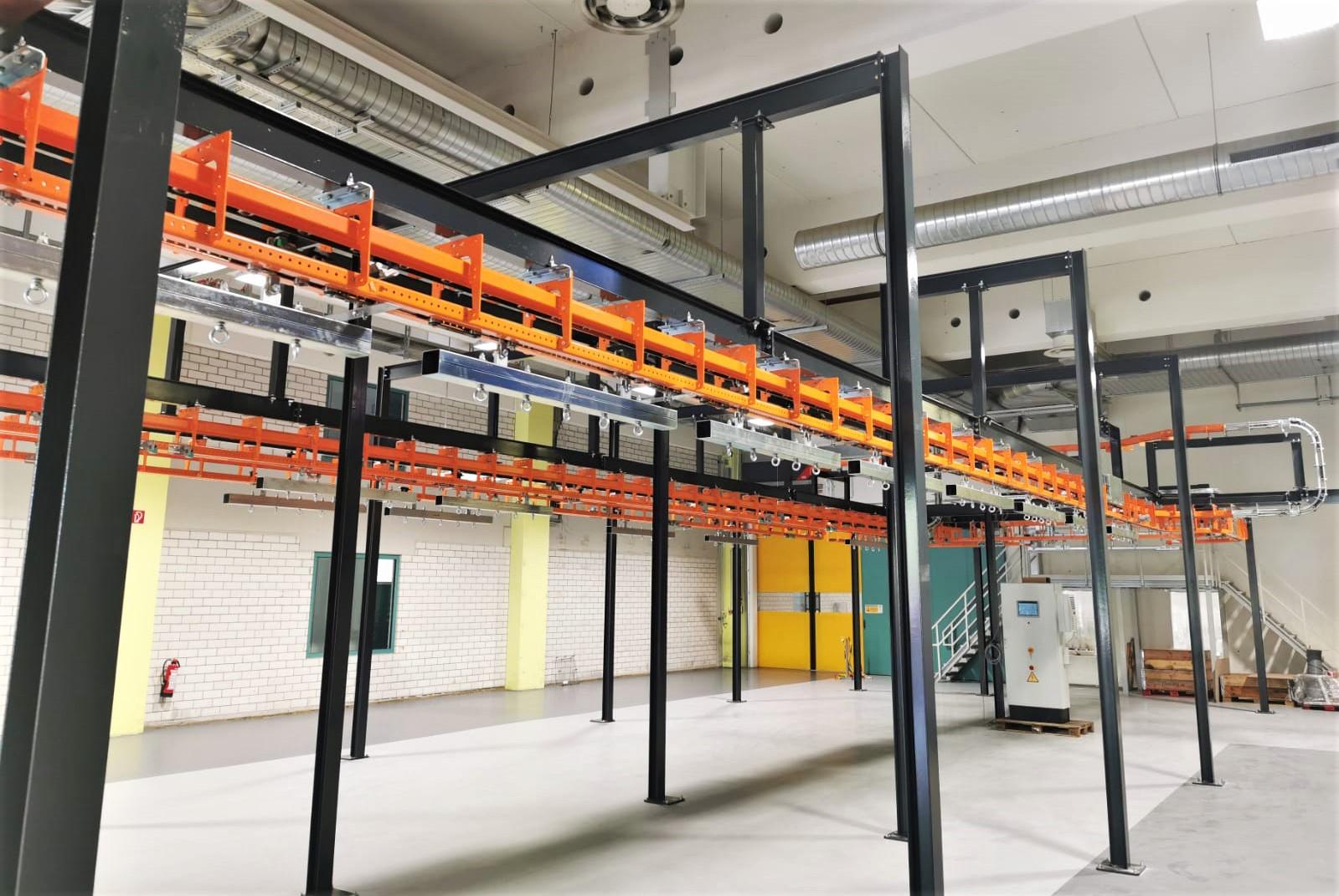 The T1 Power & Free overhead conveyor system will be used to transport these gear units, big and small, across the shop floor. With a total track length of 95m, the overhead conveyor will carry the units through a painting line, drying ovens, buffer zones, and will be loaded and unloaded via a drop section.