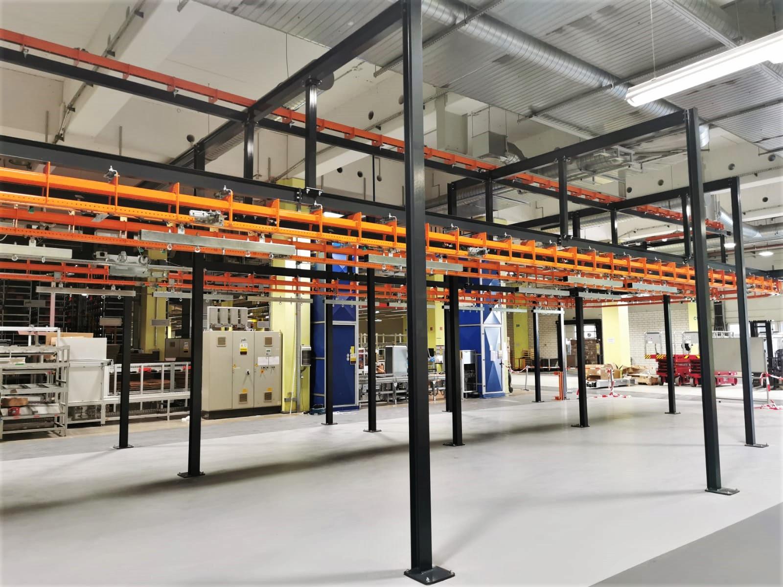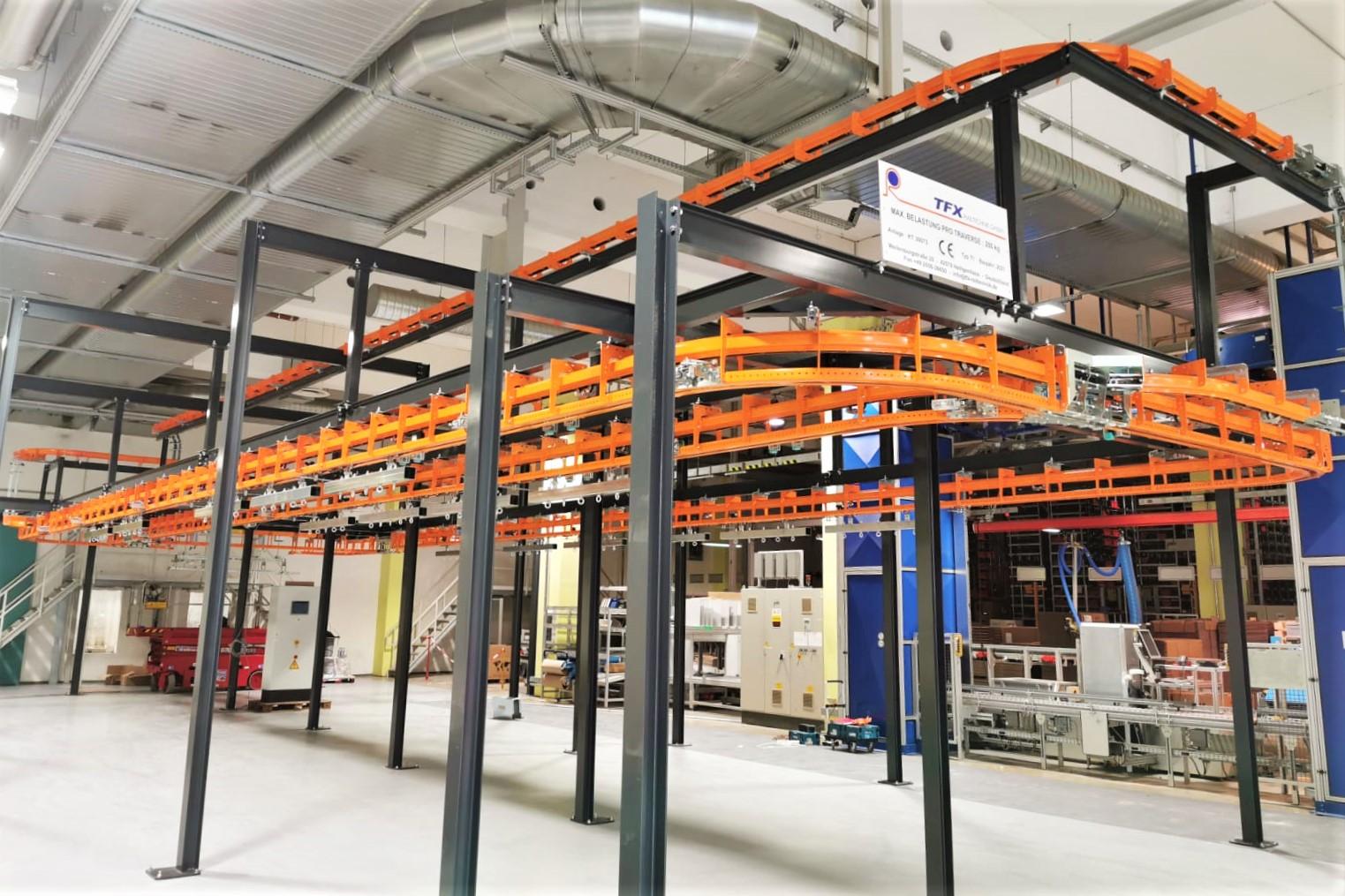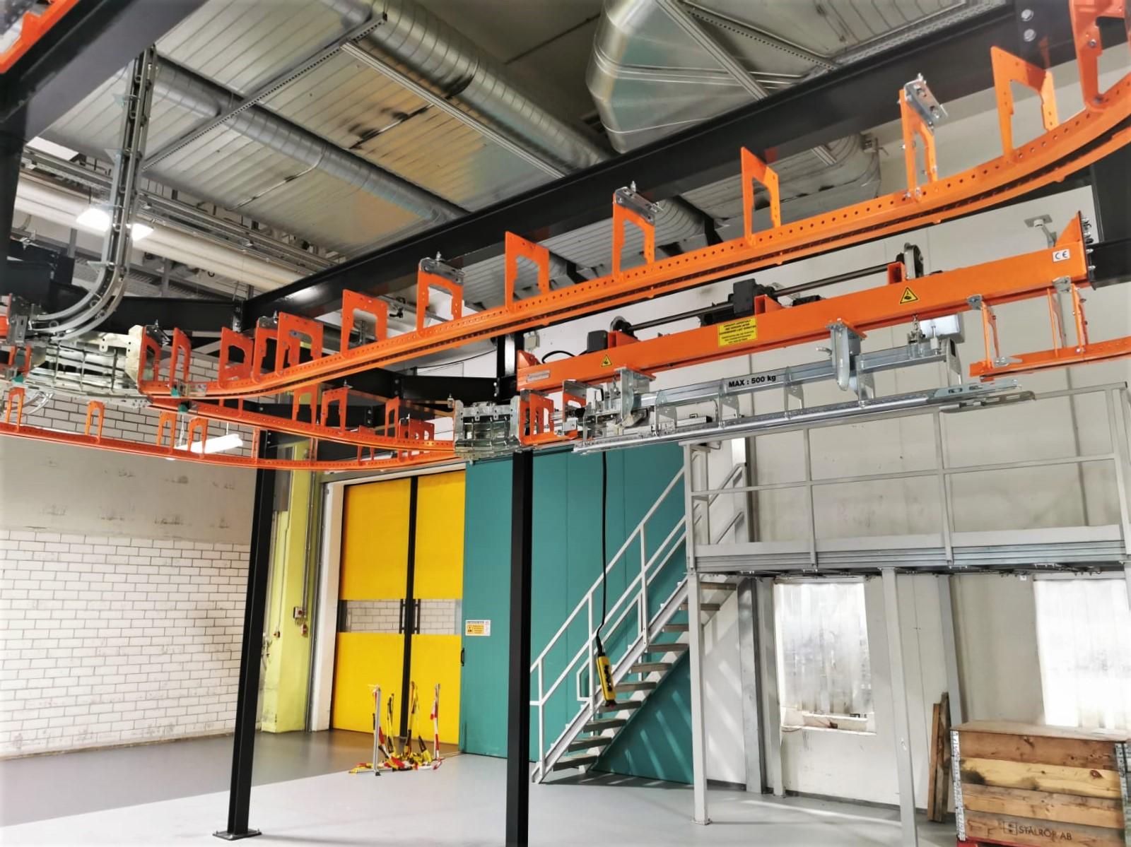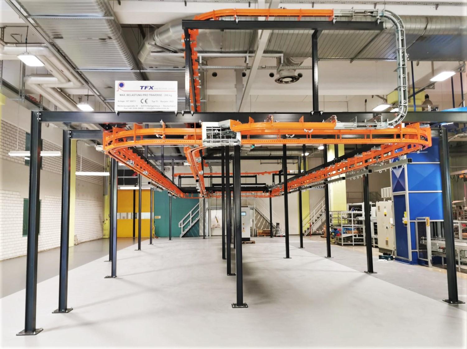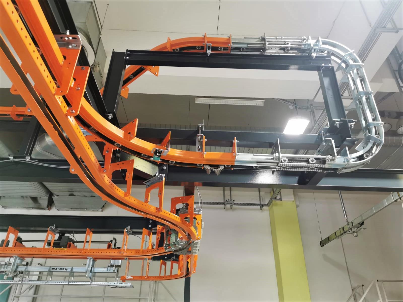 The T1 Power & Free overhead conveyor system will be used to transport these gear units, big and small, across the shop floor. With a total track length of 95m, the overhead conveyor will carry the units through a painting line, drying ovens, buffer zones, and will be loaded and unloaded via a drop section.